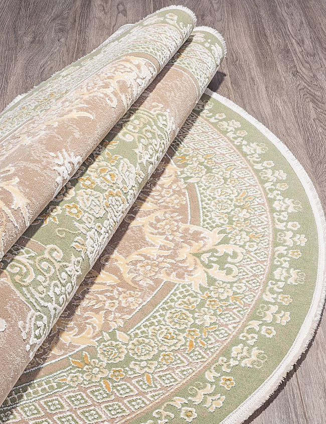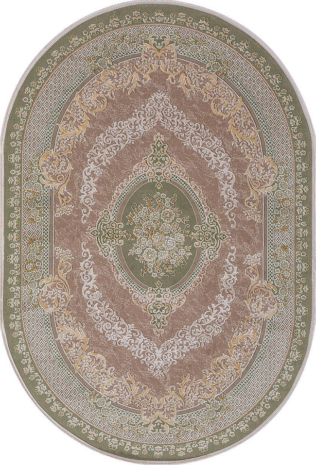 Коротко: «Ковер QATAR 33342 040 GREEN Овал» (QATAR, MERINOS, Турция) — ковер для дома, гостиной. материал: полиэстер, стиль: в классическом стиле, цвет: бежевый, коричневый, зеленый, ворс: 9 мм, плотность: 672000 точек/м², основа: джут, ориентирован на классическую подачу, страна производства: Турция.