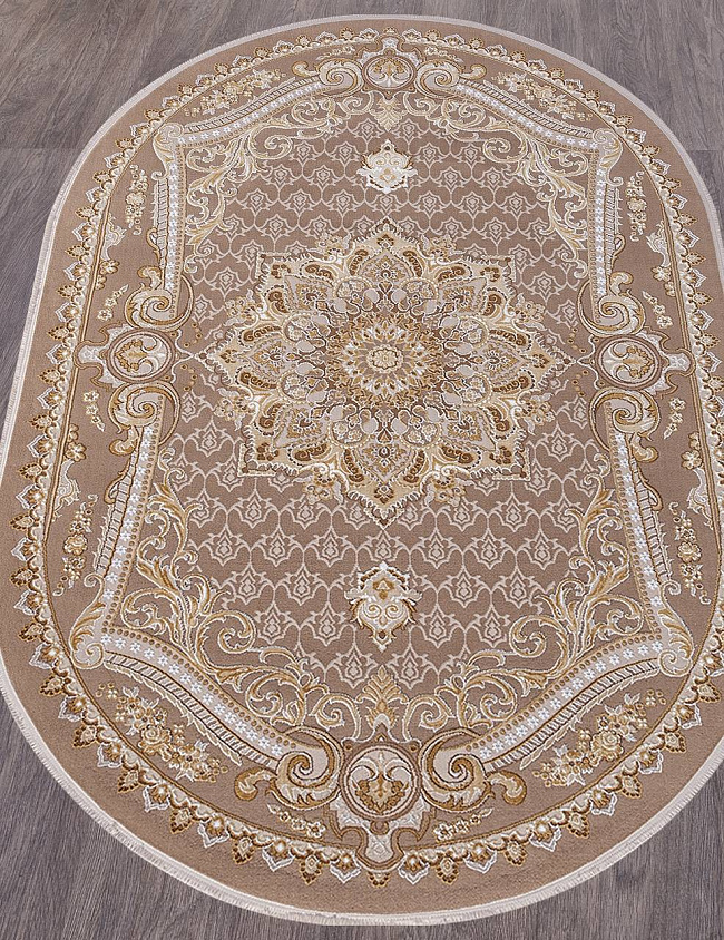 Коротко: «Ковер QATAR 33525 070 BEIGE Овал» (QATAR, MERINOS, Турция) — ковер для дома, гостиной. материал: полипропилен, стиль: в классическом стиле, цвет: бежевый, коричневый, ворс: 9 мм, плотность: 672000 точек/м², основа: джут, ориентирован на классическую подачу, страна производства: Турция.