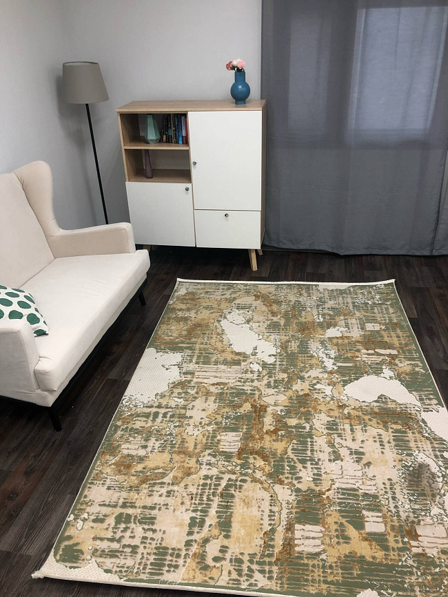 Коротко: «Ковер QATAR NK302 070» (QATAR, MERINOS, Турция) — ковер для дома, гостиной. материал: полиэстер, стиль: в современном стиле, цвет: кремовый, бежевый, зеленый, ворс: 9 мм, плотность: 672000 точек/м², основа: джут, подходит для современного интерьера, страна производства: Турция.