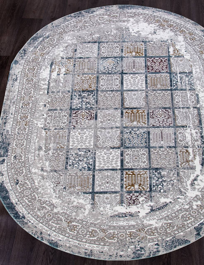 Коротко: «Ковер QUANTUM 03004G GREY / GREY Овал» (QUANTUM, KARMEN HALI, Турция) — ковер для дома, гостиной. материал: полиэстер, стиль: в классическом стиле, цвет: серый, синий, ворс: 9 мм, плотность: 714000 точек/м², основа: хлопок, ориентирован на классическую подачу, страна производства: Турция.