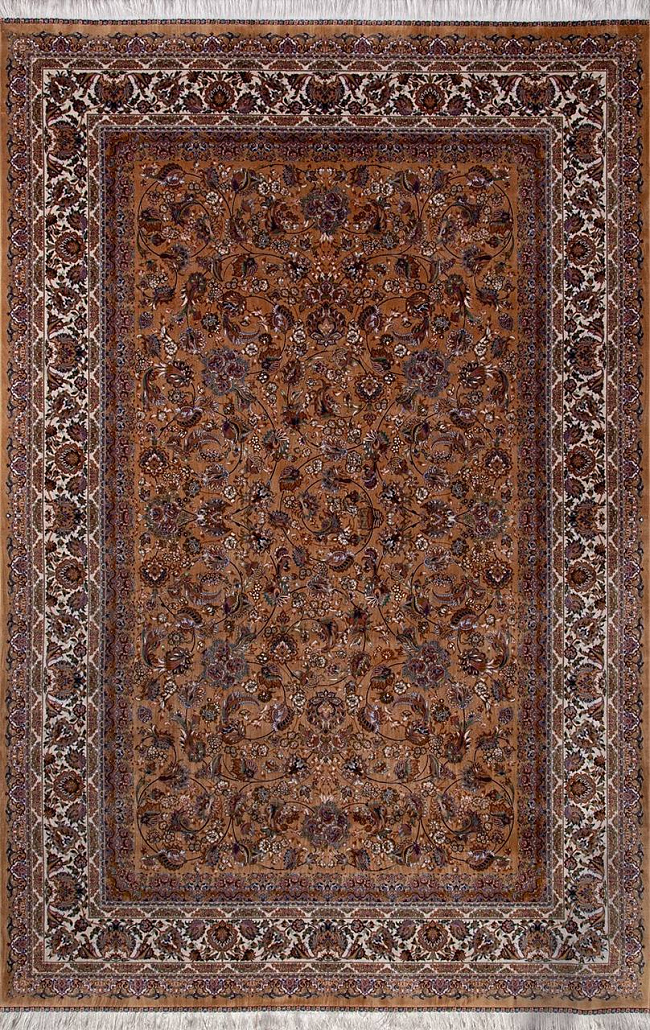 Коротко: «Ковер QUM 617 BEIGE» (QUM, IRANOS, Иран) — ковер для дома, гостиной. материал: бамбуковый шелк, стиль: в классическом стиле, цвет: коричневый, бежевый, тип ворса: Средний – 6-12 мм, плотность: 3600000 точек/м², основа: хлопок, ориентирован на классическую подачу, страна производства: Иран.