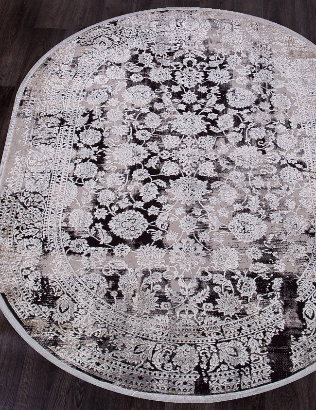 Коротко: «Ковер ROXANNE 17102 L. GREY / D. GREY Овал» (ROXANNE, IPEK MEKIK, Турция) — ковер для дома, гостиной. материал: акрил, стиль: в классическом стиле, цвет: серый, ворс: 8 мм, плотность: 1250000 точек/м², основа: джут, ориентирован на классическую подачу, страна производства: Турция.