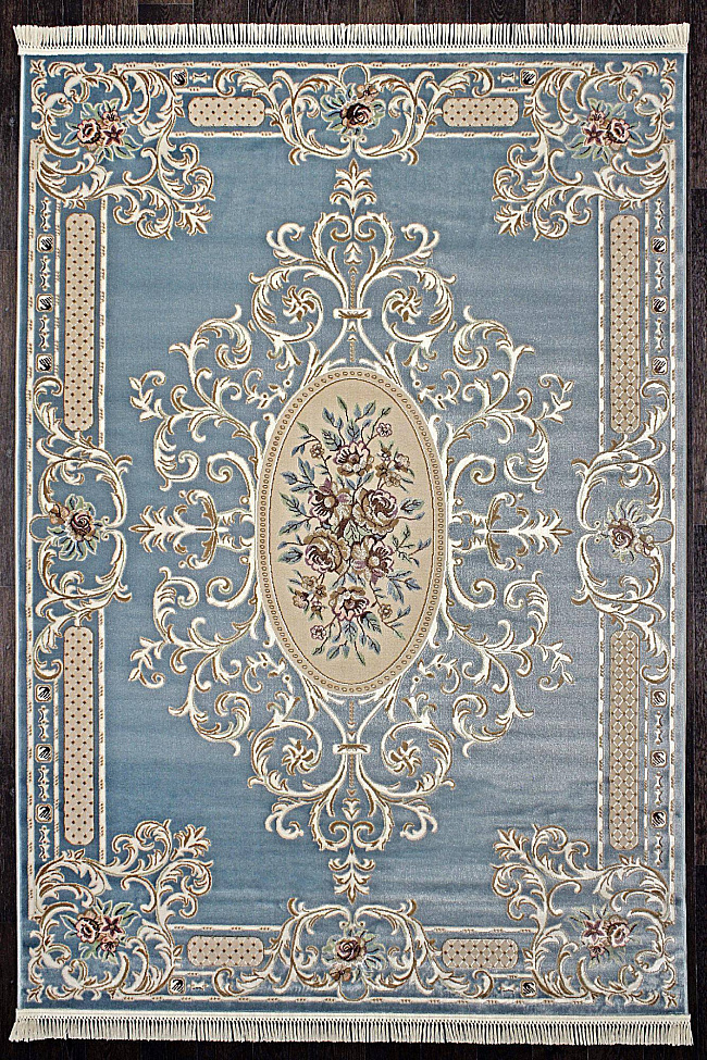 Коротко: «Ковер ROXY D701 BLUE» (ROXY, MERINOS) — ковер для дома, гостиной. материал: полиэстер, стиль: в классическом стиле, цвет: синий, бежевый, ворс: 10 мм, плотность: 400000 точек/м², основа: джут, ориентирован на классическую подачу, страна производства: Россия.