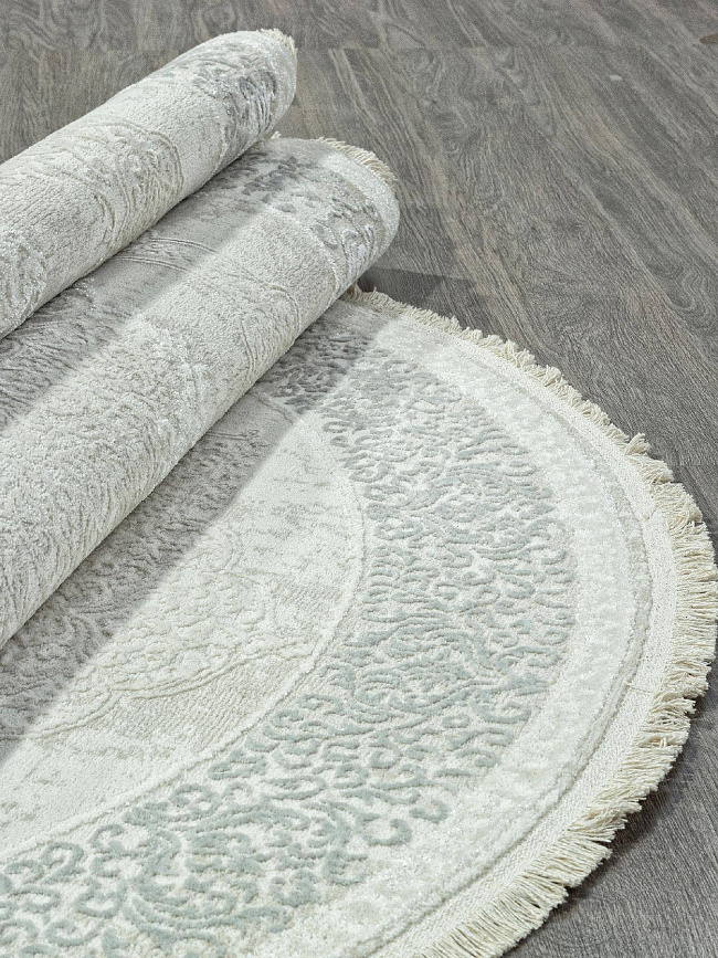 Коротко: «Ковер RUBI-A 26702Z CREAM / BEIGE Овал» (RUBI, DURKAR, Турция) — ковер для дома, гостиной. материал: полиэстер + Полипропилен, стиль: в классическом стиле, цвет: серый, кремовый, ворс: 9 мм, плотность: 440000 точек/м², основа: хлопок, ориентирован на классическую подачу, страна производства: Турция.