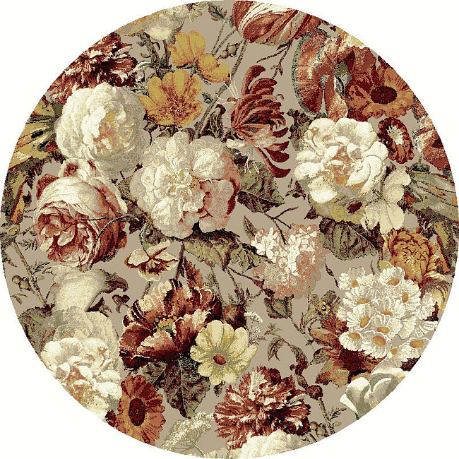 Коротко: «Ковер с цветами OSTA Chroma Круг 4707 600» (CHROMA round UF, OSTA) — ковер для дома, гостиной. материал: полипропилен 100%, стиль: в современном стиле, цвет: бежевый, красный, серый, ворс: 10.5 мм, плотность: 950000 точек/м², основа: джутовая, подходит для современного интерьера, страна производства: Бельгия.