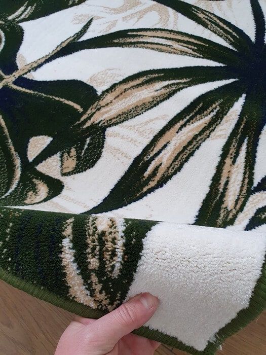 Коротко: «Ковер с цветами SCANDINAVIAN MONSTERA 5» (Creative Carpets - machine made, Creative Сarpets) — ковер для детской, дома. материал: полипропилен, стиль: современный, Скандинавский, цвет: кремовый с зеленым рисунком, ворс: 8 мм, плотность: 320000 точек/м², основа: джутовая, подходит для современного интерьера, страна производства: Россия.