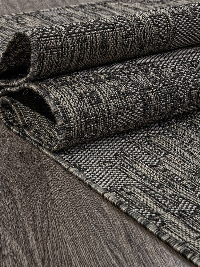 Коротко: «Ковер-циновка KAIR S144 BLACK-GRAY» (KAIR, MERINOS) — ковер для дома, гостиной. материал: полипропилен, стиль: в современном стиле, цвет: серый, черный, тип ворса: Безворсовый, Циновка, плотность: 128000 точек/м², основа: джут, подходит для современного интерьера, страна производства: Россия.