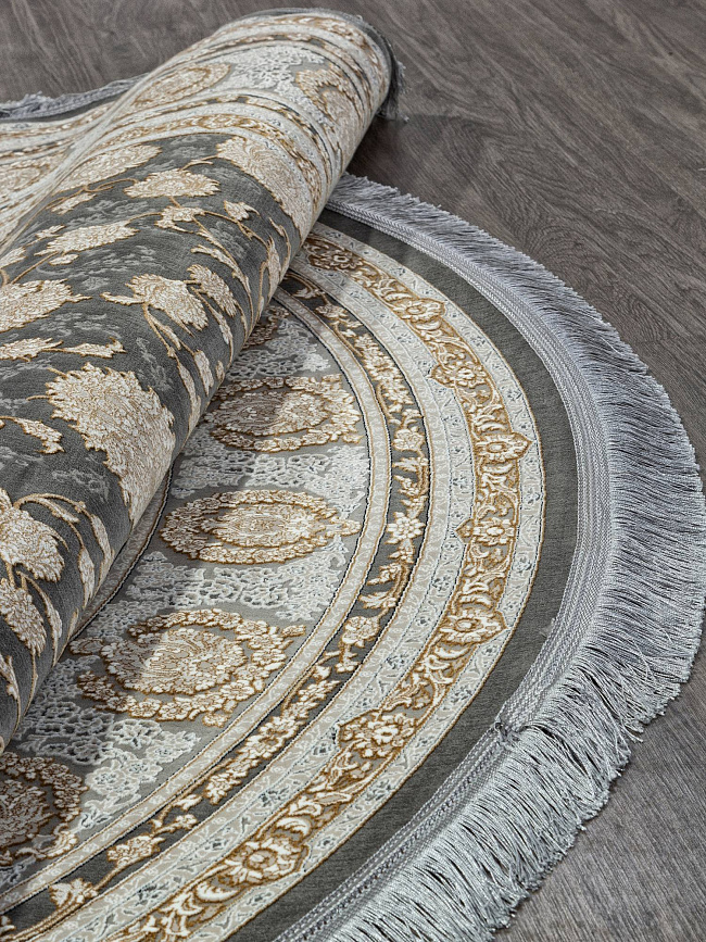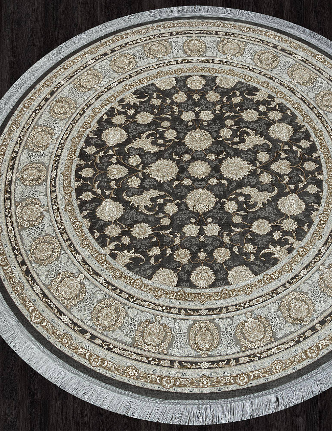 Коротко: «Ковер SALIMA 8004 000 Круг» (SALIMA, IRANOS, Иран) — ковер для дома, гостиной. материал: акрил, стиль: в классическом стиле, цвет: серый, бежевый, кремовый, коричневый, ворс: 7 мм, плотность: 3600000 точек/м², основа: хлопок, ориентирован на классическую подачу, страна производства: Иран.