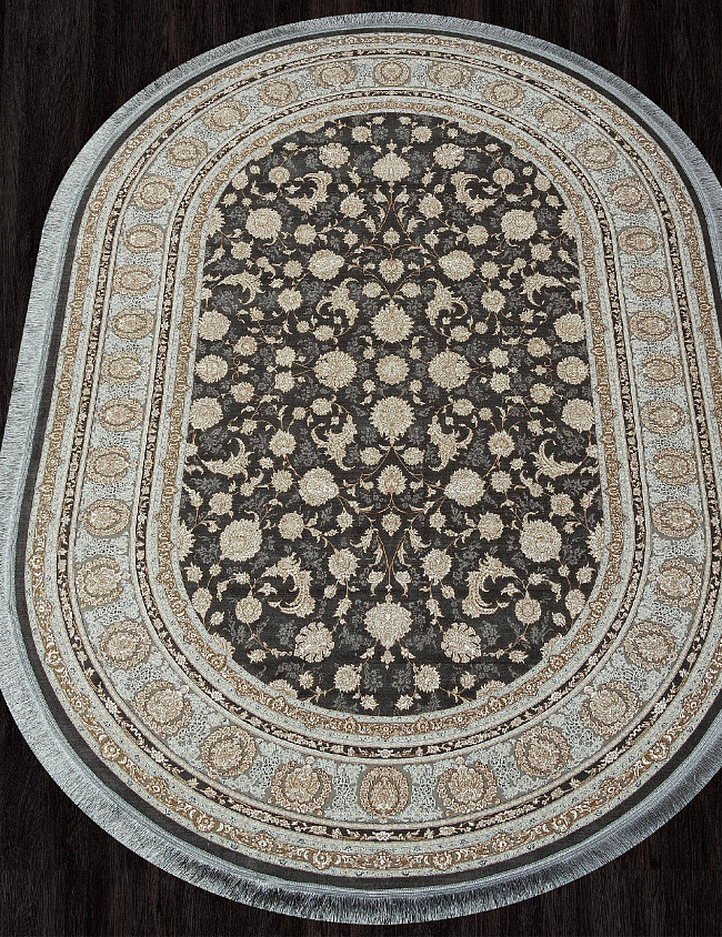 Коротко: «Ковер SALIMA 8004 000 Овал» (SALIMA, IRANOS, Иран) — ковер для дома, гостиной. материал: акрил, стиль: в классическом стиле, цвет: бежевый, коричневый, серый, ворс: 7 мм, плотность: 3600000 точек/м², основа: хлопок, ориентирован на классическую подачу, страна производства: Иран.