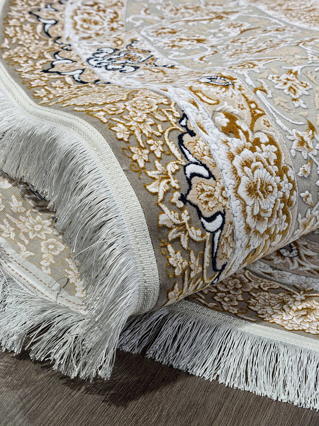 Коротко: «Ковер SALIMA 8010 000 Круг» (SALIMA, IRANOS, Иран) — ковер для дома, гостиной. материал: акрил, стиль: в классическом стиле, цвет: кремовый, бежевый, коричневый, ворс: 7 мм, плотность: 3600000 точек/м², основа: хлопок, ориентирован на классическую подачу, страна производства: Иран.