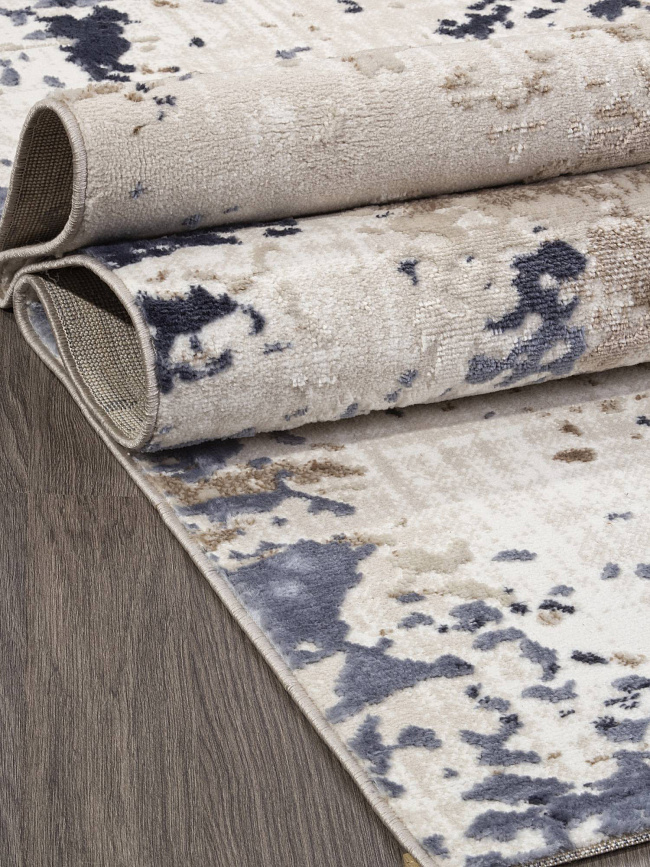 Коротко: «Ковер SAMIRA O1442 030 BLUE» (SAMIRA, MERINOS, Турция) — ковер для дома, гостиной. материал: полиэстер, стиль: в современном стиле, цвет: кремовый, коричневый, синий, ворс: 8 мм, плотность: 192000 точек/м², основа: джут, подходит для современного интерьера, страна производства: Турция.