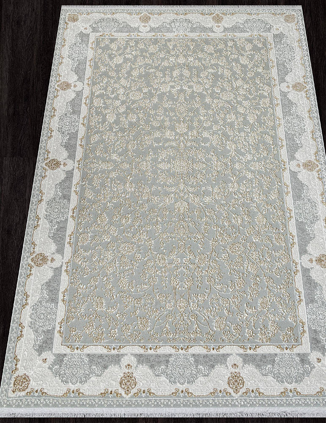 Коротко: «Ковер SANDALI 30219A GREY / CREAM» (SANDALI, DURKAR, Турция) — ковер для дома, гостиной. материал: полиэстер, стиль: в классическом стиле, цвет: серый, кремовый, ворс: 9 мм, плотность: 720000 точек/м², основа: хлопок, ориентирован на классическую подачу, страна производства: Турция.
