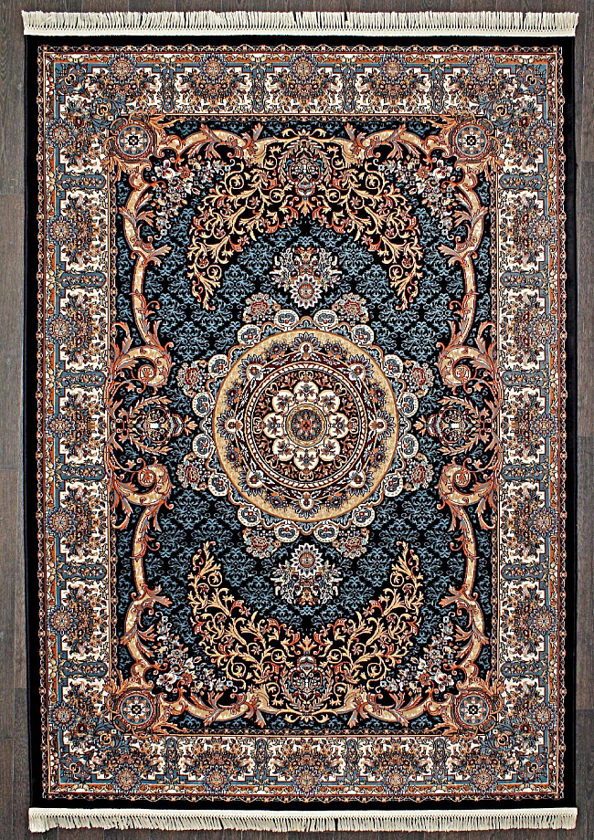Коротко: «Ковер SHAHREZA R108 NAVY» (SHAHREZA, MERINOS) — ковер для дома, гостиной. материал: полипропилен, стиль: в классическом стиле, цвет: синий, кремовый, бежевый, ворс: 9 мм, плотность: 560000 точек/м², основа: джут, ориентирован на классическую подачу, страна производства: Россия.