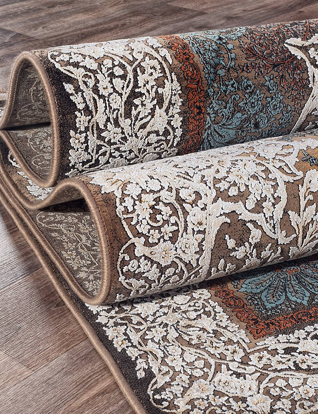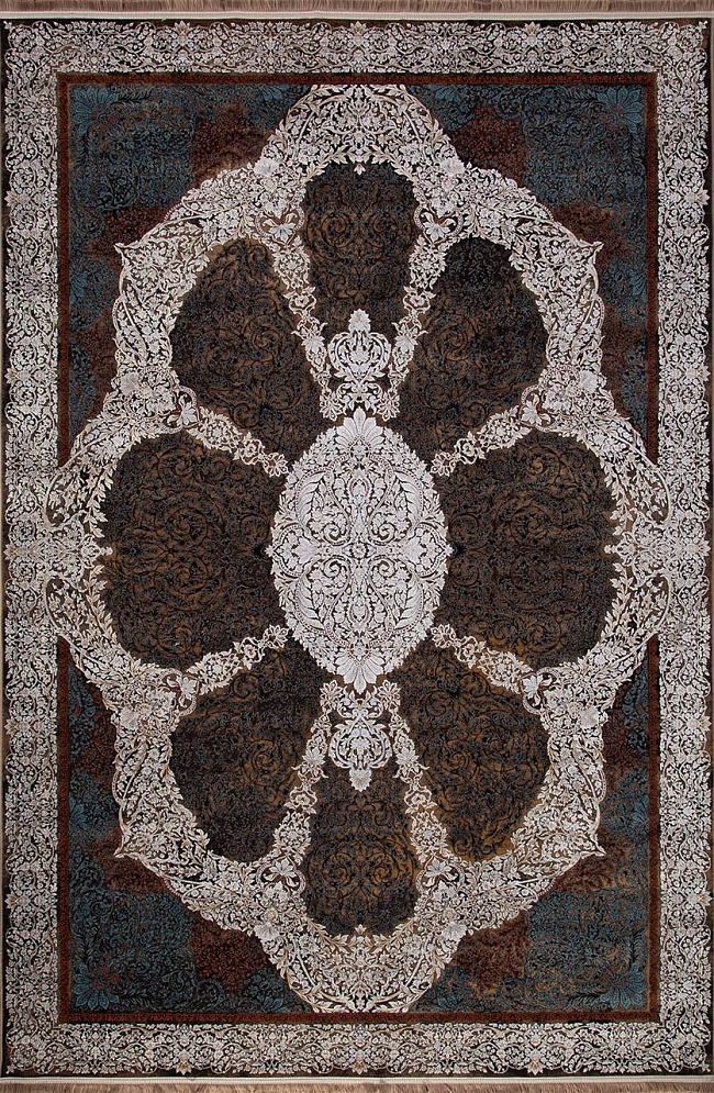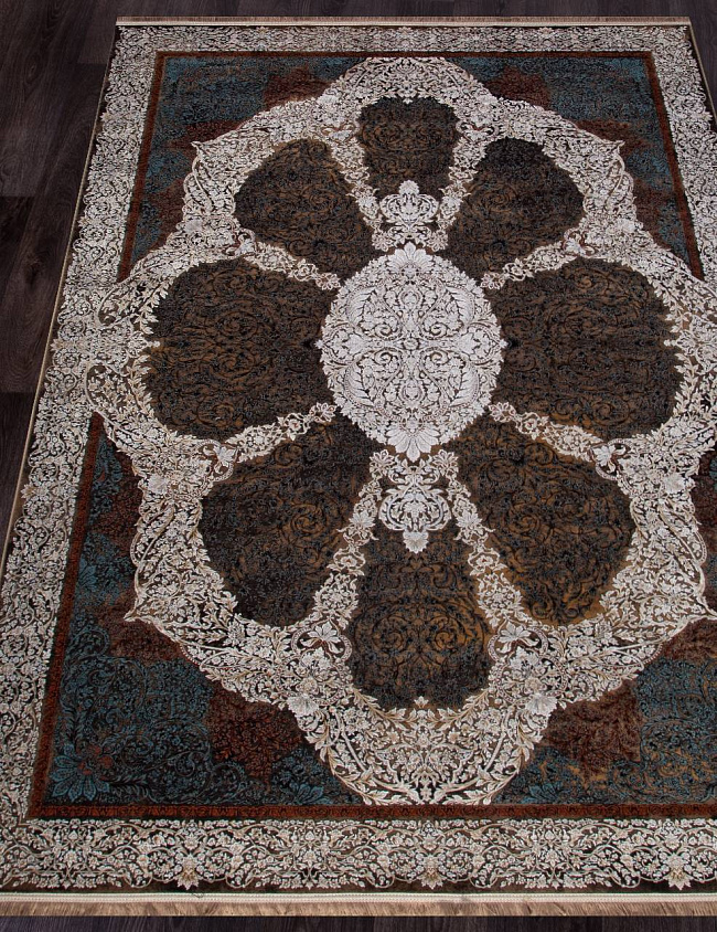 Коротко: «Ковер SHEIKH 9239 BROWN» (SHEIKH, IRANOS, Иран) — ковер для дома, гостиной. материал: бамбуковый шелк, стиль: в классическом стиле, цвет: серый, коричневый, синий, тип ворса: Короткий, плотность: 3600000 точек/м², основа: джут, ориентирован на классическую подачу, страна производства: Иран.