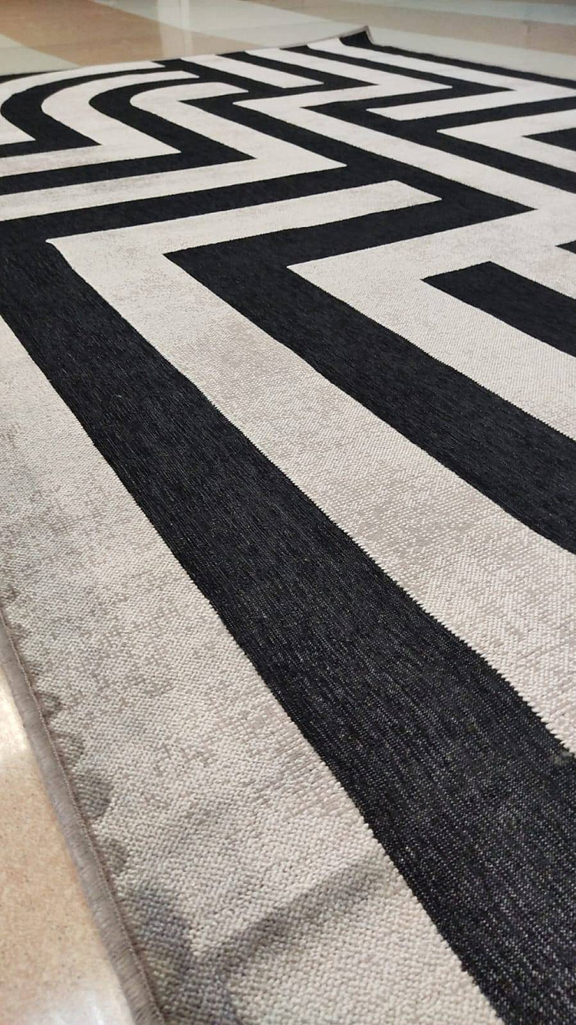Этот ковер хорошо работает в современном интерьере, где важны чистая визуальная логика, фактура и умеренный декоративный акцент без перегруженности деталями.