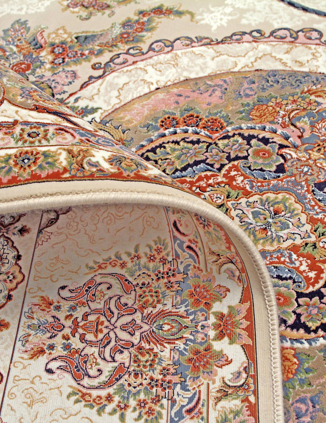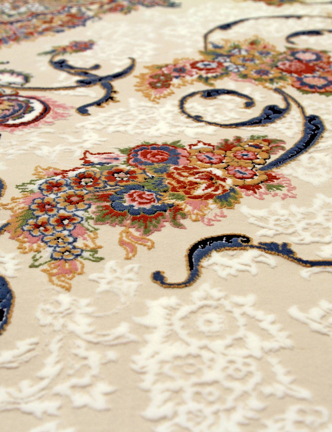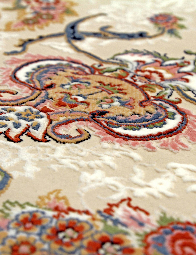 Коротко: «Ковер SHIRAZ 1230 TABRIZ» (SHIRAZ, IRANOS, Иран) — ковер для дома, гостиной. материал: акрил, стиль: в классическом стиле, цвет: кремовый, коричневый, тип ворса: Средний – 6-12 мм, плотность: 3600000 точек/м², основа: хлопок, ориентирован на классическую подачу, страна производства: Иран.