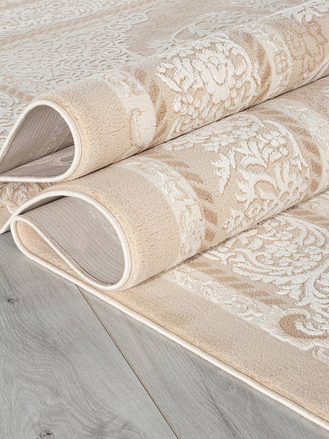 Коротко: «Ковер SIESTA M048A WHITE / LIGHT BEIGE» (SIESTA, ROZA, Турция) — ковер для дома, гостиной. материал: полиэстер, стиль: в классическом стиле, цвет: белый, бежевый, ворс: 9 мм, плотность: 576000 точек/м², основа: хлопок, ориентирован на классическую подачу, страна производства: Турция.