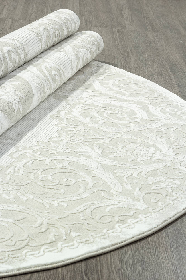 Коротко: «Ковер SIROCCO E413AC BEIGE / WHITE Овал» (SIROCCO, VALENTIS, Турция) — ковер для дома, гостиной. материал: полиэстер + Полипропилен, стиль: в классическом стиле, цвет: кремовый, белый, ворс: 10 мм, плотность: 528000 точек/м², основа: хлопок, ориентирован на классическую подачу, страна производства: Турция.