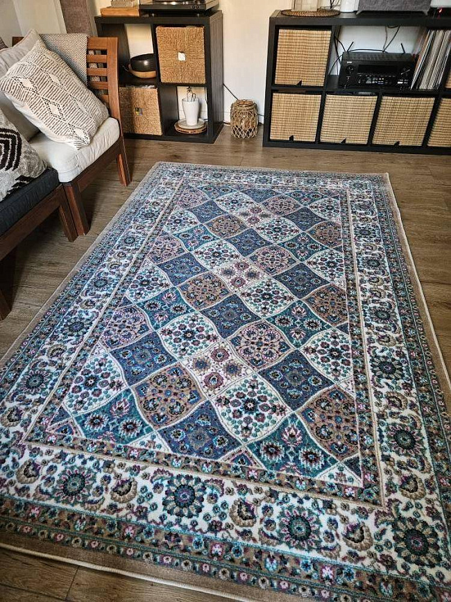 По выбранному размеру: 1.5 x 2.3 м — оценивайте относительно мебели и площади комнаты, чтобы ковер работал как часть композиции.