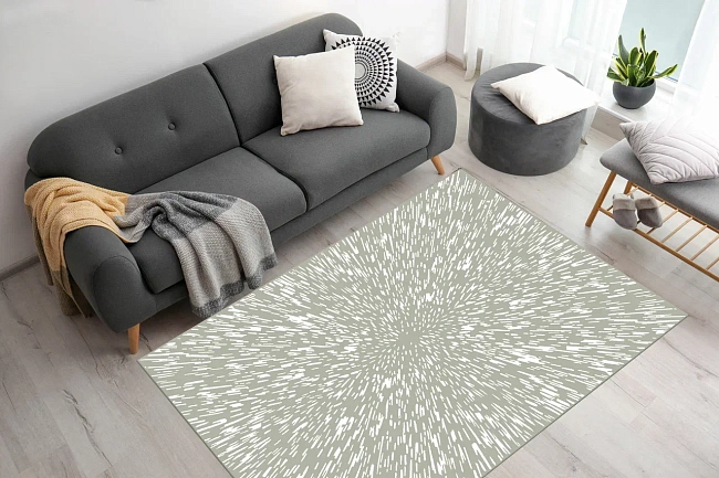 Этот ковер хорошо работает в современном интерьере, где важны чистая визуальная логика, фактура и умеренный декоративный акцент без перегруженности деталями.