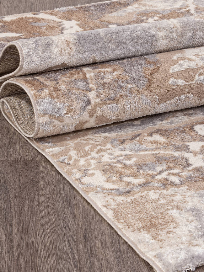 Коротко: «Ковер STYLE NO573 765» (STYLE, MERINOS, Турция) — ковер для дома, гостиной. материал: полиэстер, стиль: в современном стиле, цвет: серый, бежевый, коричневый, ворс: 10 мм, плотность: 236000 точек/м², основа: джут, подходит для современного интерьера, страна производства: Турция.