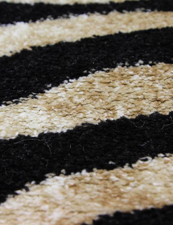 Коротко: «Ковер SUNRISE 2 D053 BLACK-CREAM Круг» (SUNRISE 2) — ковер. стиль: в современном стиле, ворс: 8 мм, плотность: 204800 точек/м², основа: джут, подходит для современного интерьера, страна производства: Россия.