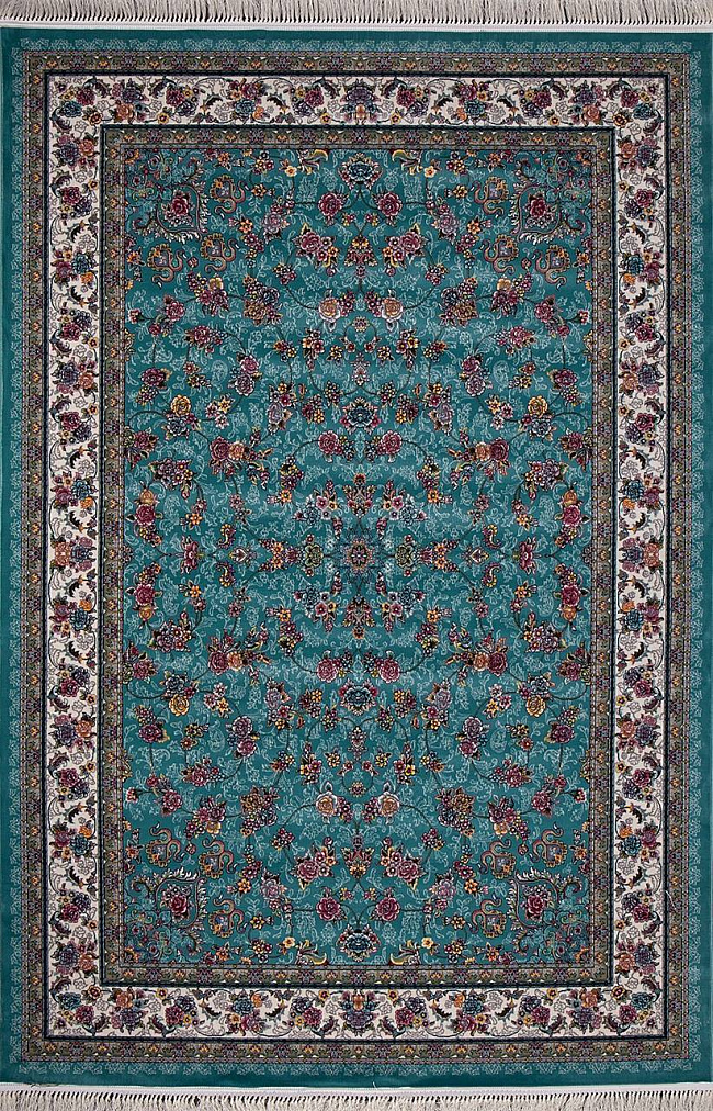 Коротко: «Ковер TEHRAN 7513 BLUE» (TEHRAN, IRANOS, Иран) — ковер для дома, гостиной. материал: полипропилен, стиль: в классическом стиле, цвет: бирюзовый, кремовый, ворс: 12 мм, плотность: 2100000 точек/м², основа: джут, ориентирован на классическую подачу, страна производства: Иран.