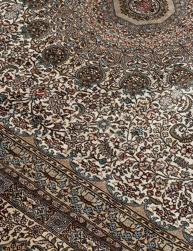 Основа: шелк влияет на устойчивость ковра, сохранение формы и то, как он будет лежать на полу в повседневном использовании.