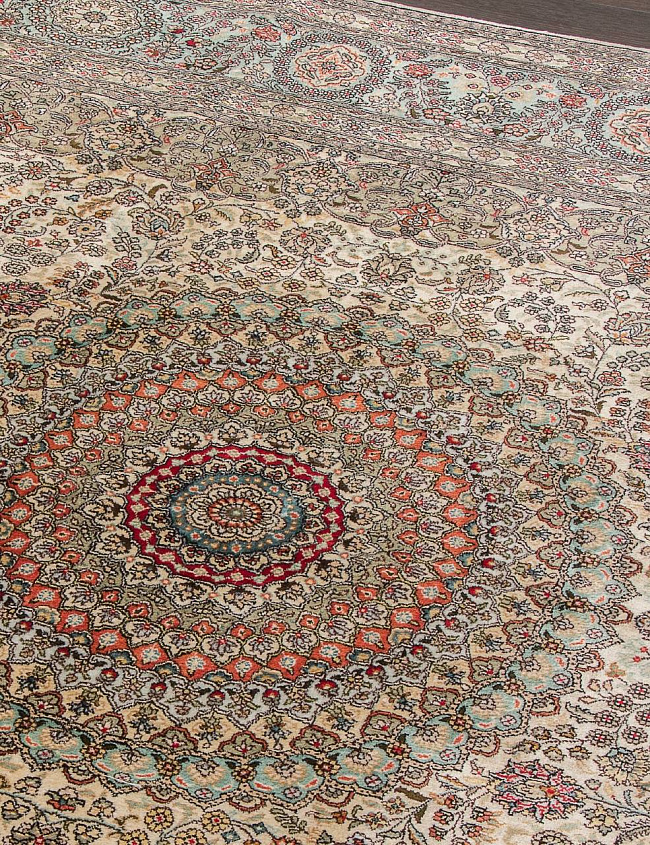 Основа: шелк влияет на устойчивость ковра, сохранение формы и то, как он будет лежать на полу в повседневном использовании.
