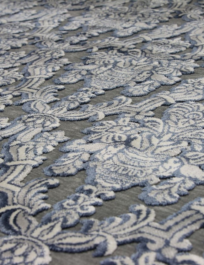 Коротко: «Ковер TIFFANY 0VC953 GREY V» (TIFFANY, Roger Vanden Berghe) — ковер для дома, гостиной. материал: вискоза, стиль: в современном стиле, цвет: серый, ворс: 6.25 мм, плотность: 1000000 точек/м², основа: джутовая, ориентирован на классическую подачу, страна производства: Бельгия.