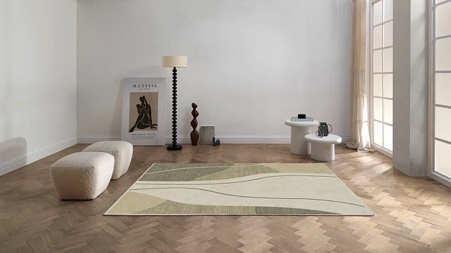 Этот ковер хорошо работает в современном интерьере, где важны чистая визуальная логика, фактура и умеренный декоративный акцент без перегруженности деталями.