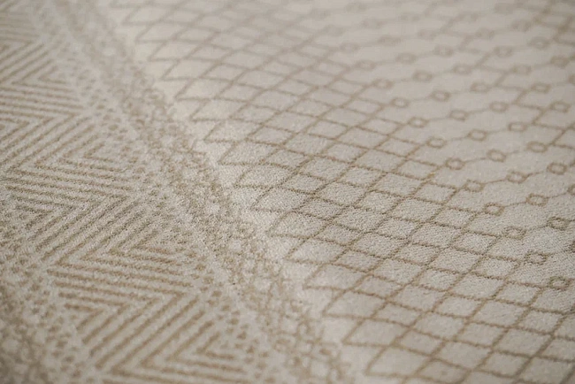 Плотность: 700000 ворсовых точек/м2. Повышенный показатель, который обычно связан с более стабильной структурой и хорошей читаемостью рисунка.