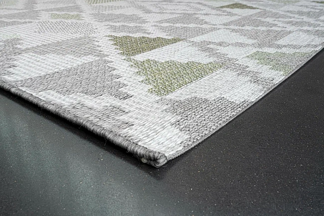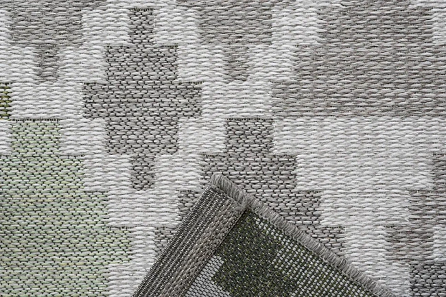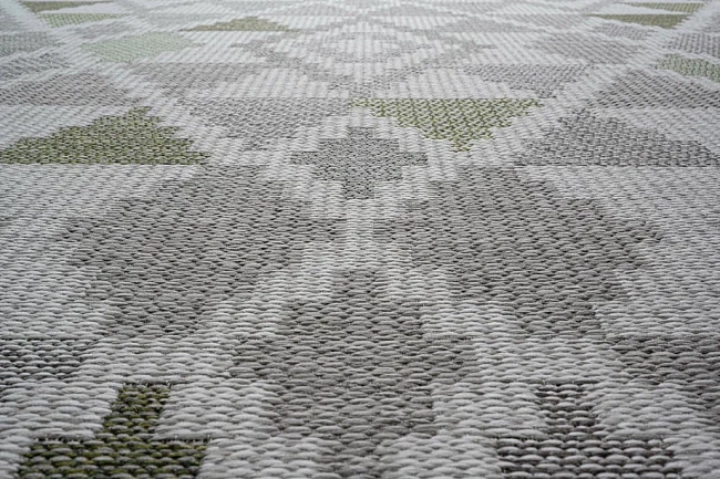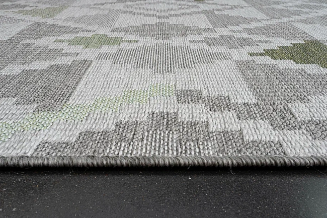 Коротко: «Ковер-циновка BRIGHTON 98053 402496» (Brighton, Ragolle) — ковер для дачи, кухни. материал: полипропилен, стиль: современный, Лофт, Модерн, цвет: зеленый, серый, тип ворса: Безворсовый, Циновка, плотность: 96000 точек/м², основа: джутовая, подходит для современного интерьера, страна производства: Бельгия.