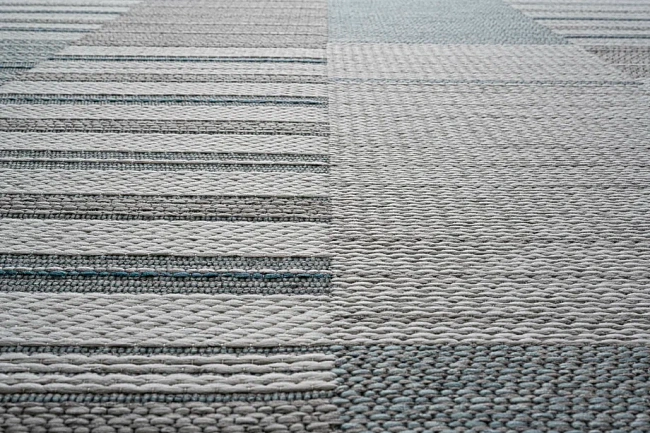 Этот ковер хорошо работает в современном интерьере, где важны чистая визуальная логика, фактура и умеренный декоративный акцент без перегруженности деталями.