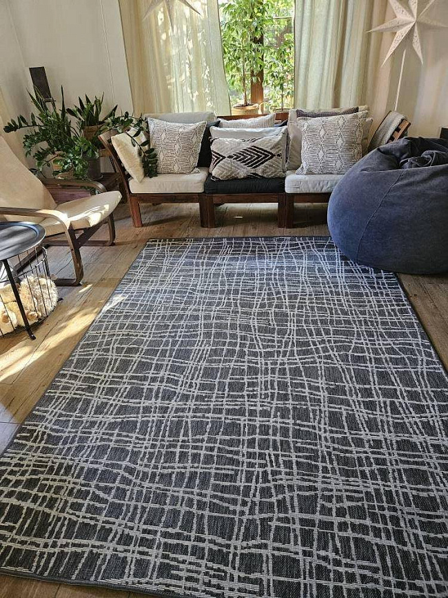 Этот ковер хорошо работает в современном интерьере, где важны чистая визуальная логика, фактура и умеренный декоративный акцент без перегруженности деталями.
