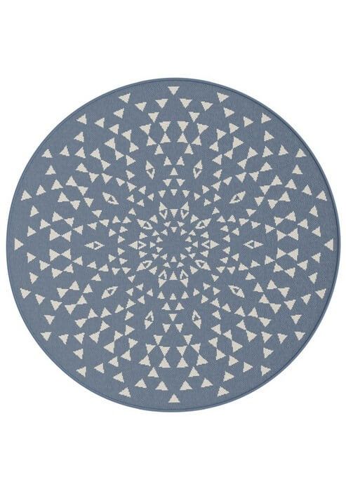 Коротко: «Ковер-циновка Essenza 48715 591 КРУГ» (Essenza round UF, BALTA) — ковер для дачи, кухни. материал: полипропилен, стиль: современный, Лофт, Модерн, цвет: синий, тип ворса: Безворсовый, Циновка, плотность: 96000 точек/м², основа: джутовая, подходит для современного интерьера, страна производства: Бельгия.