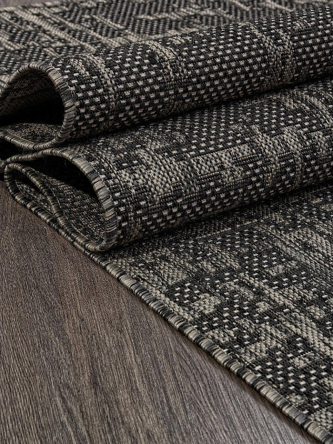 Коротко: «Ковер-циновка KAIR-A S136 BLACK-GRAY» (KAIR, MERINOS) — ковер для дома, гостиной. материал: полипропилен, стиль: в современном стиле, цвет: серый, черный, тип ворса: Безворсовый, Циновка, плотность: 172800 точек/м², основа: джут, подходит для современного интерьера, страна производства: Россия.