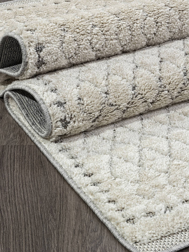 Коротко: «Ковер TUNIS 5671B L. GRAY / WHITE» (TUNIS, MILAT, Турция) — ковер для дома, гостиной. материал: полипропилен + Полиэстер, стиль: в современном стиле, цвет: серый, ворс: 20 мм, плотность: 89000 точек/м², основа: хлопок, подходит для современного интерьера, страна производства: Турция.