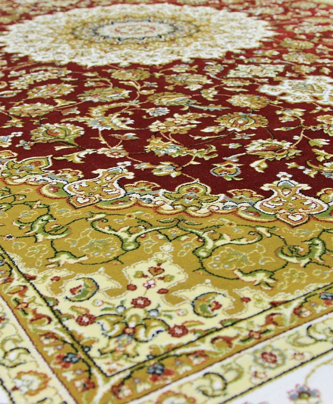 Коротко: «Ковер Уникум 0IS007 RED N7 V, высота ворса 9 мм» (UNIQUE, Roger Vanden Berghe) — ковер для дома, гостиной. материал: бамбуковый шелк, стиль: в классическом стиле, цвет: красный, желтый, кремовый, ворс: 9 мм, плотность: 2000000 точек/м², основа: джутовая, ориентирован на классическую подачу, страна производства: Бельгия.