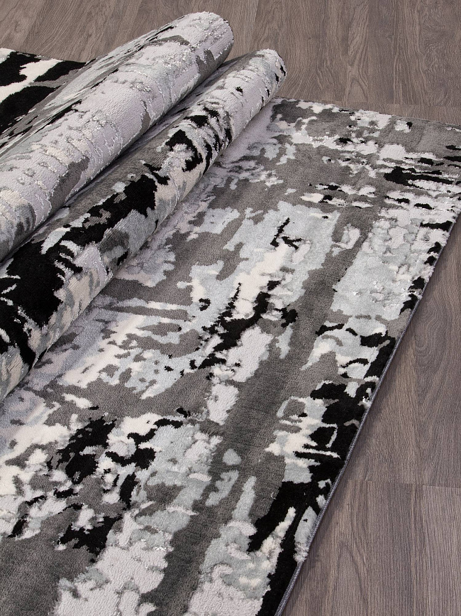 Коротко: «Ковер Valentino Y504A LIGHT GREY SHIRINK / BLACK» (Valentino, ARDA, Турция) — ковер для дома, гостиной. материал: полиэстер 35% + Полипропилен 65%, стиль: в современном стиле, цвет: серый, черный, белый, ворс: 10 мм, плотность: 320000 точек/м², основа: джут, подходит для современного интерьера, страна производства: Турция.