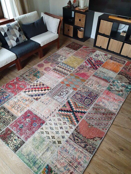 Коротко: «Ковер винтажный PATCHWORK ручной работы Vintage Look at Me P-97» (Vintage, Zadeh) — ковер для дома, гостиной. материал: шерсть, стиль: классический, Лофт, Модерн, Винтажный, Бохо, цвет: разноцветный, ворс: 5 мм, плотность: 1000000 точек/м², основа: тканевая, ориентирован на классическую подачу, страна производства: Иран.