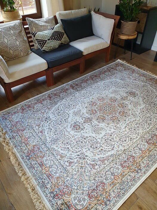 По выбранному размеру: 0.95 x 1.4 м — оценивайте относительно мебели и площади комнаты, чтобы ковер работал как часть композиции.