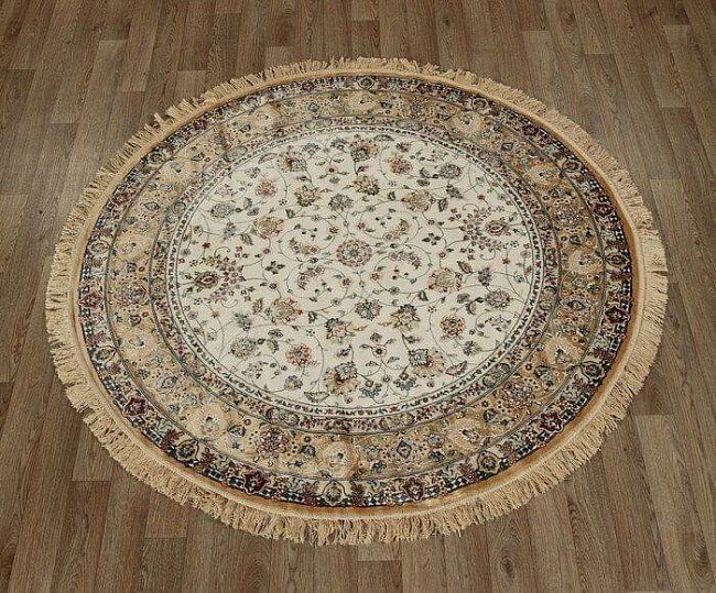Коротко: «Ковер ворс вискоза-хлопок ROYAL PALACE 14295 6121 КРУГ» (Royal Palace round UF, Ragolle) — ковер для дома, гостиной. материал: вискоза+ хлопок, стиль: в классическом стиле, цвет: бежевый, ворс: 3 мм, плотность: 890500 точек/м², основа: джутовая, ориентирован на классическую подачу, страна производства: Бельгия.