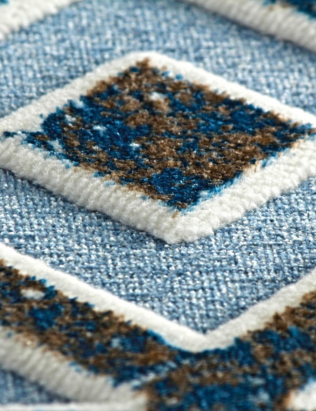 Коротко: «Ковер YUTA 0T291RG BLUE / BLUE» (YUTA, BEHRAM, Турция) — ковер для дома, гостиной. материал: полиэстер, стиль: в современном стиле, цвет: кремовый, синий, ворс: 7 мм, плотность: 768000 точек/м², основа: джутовая, подходит для современного интерьера, страна производства: Турция.