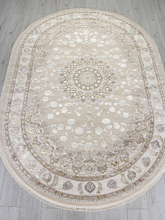 Коротко: «Ковер ZARINA A050B L. BEIGE / CREAM Овал» (ZARINA, ARDA, Турция) — ковер для дома, гостиной. материал: полиэстер, стиль: в классическом стиле, цвет: кремовый, бежевый, ворс: 8 мм, плотность: 720000 точек/м², основа: хлопок, ориентирован на классическую подачу, страна производства: Турция.