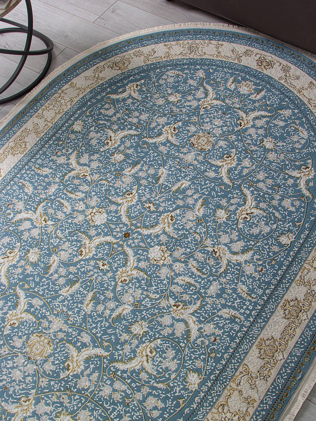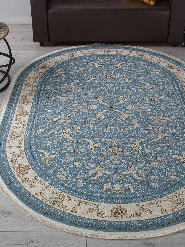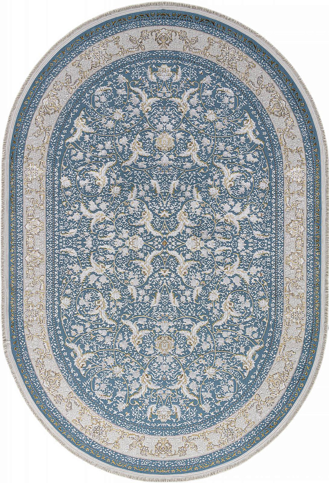 Коротко: «Ковер ZARINA M101B BLUE SHIRINK / BLUE SHIRINK Овал» (ZARINA, ARDA, Турция) — ковер для дома, гостиной. материал: полиэстер, стиль: в классическом стиле, цвет: синий, бежевый, ворс: 8 мм, плотность: 720000 точек/м², основа: джут, ориентирован на классическую подачу, страна производства: Турция.