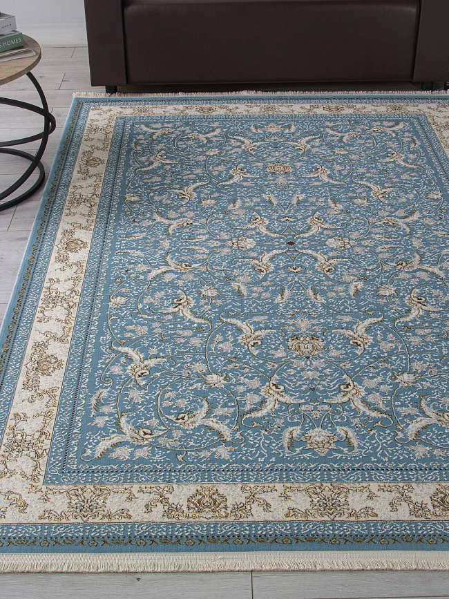 Коротко: «Ковер ZARINA M101B BLUE SHIRINK / BLUE SHIRINK» (ZARINA, ARDA, Турция) — ковер для дома, гостиной. материал: полиэстер, стиль: в классическом стиле, цвет: синий, бежевый, ворс: 8 мм, плотность: 720000 точек/м², основа: джутовая, ориентирован на классическую подачу, страна производства: Турция.