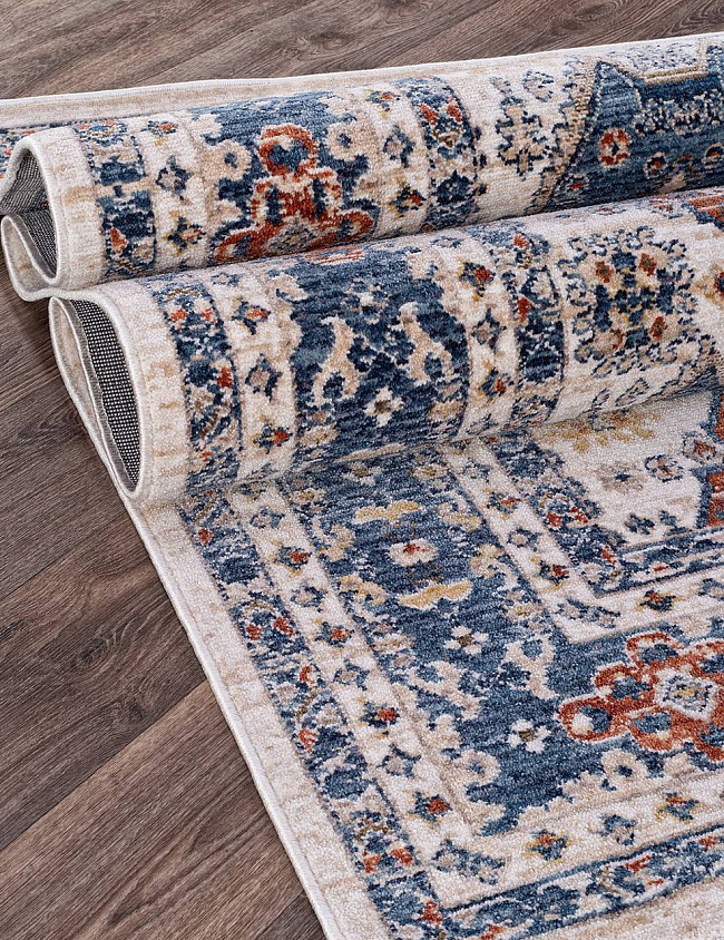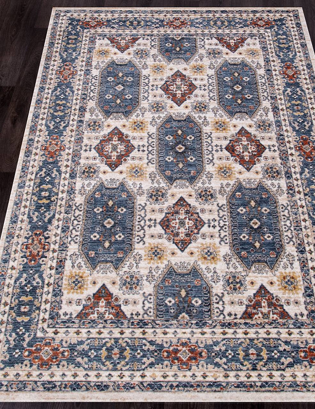 Коротко: «Ковер ZEUS 09066A VANILA» (ZEUS, ALGAN, Турция) — ковер для дома, гостиной. материал: полиэстер, стиль: в классическом стиле, цвет: кремовый, бежевый, синий, ворс: 6 мм, плотность: 272000 точек/м², основа: хлопок, ориентирован на классическую подачу, страна производства: Турция.