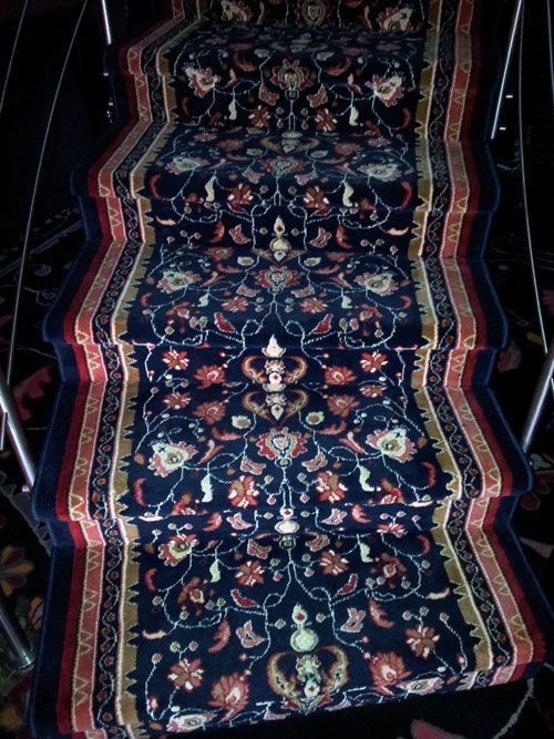 Коротко: «Ковровая дорожка с укладкой на лестницу в ресторан» (Люберецкие ковры) — ковер для лестницы, кабинета. материал: полипропилен, цвет: темно-синий, ворс: 8 мм, плотность: 320000 точек/м², основа: джутовая, страна производства: Россия.