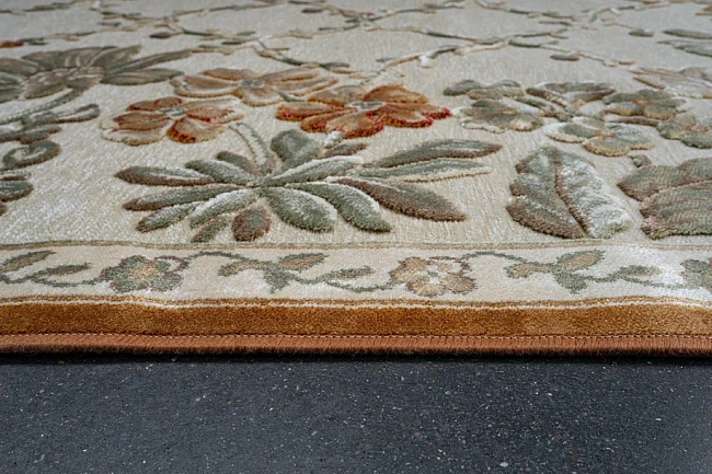Коротко: «Рельефный ковер из вискозы GENOVA Цветы 38262 6282 60» (Genova UF, Ragolle) — ковер для дома, спальни. материал: вискоза 80% + Акрил 20%, стиль: в классическом стиле, цвет: светло-бежевый, ворс: 5 мм, плотность: 1000000 точек/м², основа: джутовая, ориентирован на классическую подачу, страна производства: Бельгия.